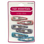 Elevate your hairstyle with the Hair Essentials Snap Clips, a 6-piece set featuring vibrant striped designs in shades of red, blue, and pink, perfect for adding both function and flair to your look. These durable snap clips provide a secure hold for all hair types, making them ideal for pinning back bangs, securing loose strands, or simply accessorizing your hairstyle with a pop of color. With smooth, rounded edges for all-day comfort, these lightweight clips are great for everyday wear, school, casual outings, or special occasions. Versatile and fashion-forward, this set of six snap clips offers a fun and practical way to brighten up any hairstyle effortlessly.,6 Piece Printed Epoxy Hair Snap Clips,