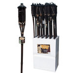 Illuminate outdoor festivities and create a fun luau atmosphere with this oil-burning Brown Bamboo Wicker Tiki Torch. Island style design features a dark brown bamboo pole with a woven torch top that houses a metal oil canister with a wick. Pole has an angle cut bottom for easy placement in the ground. Does not include oil. Measures approximately 60" tall with an 8" wick. Comes packaged with a hang tag. Floor display comes with 48 pieces.,Brown Bamboo Wicker Tiki Torch Floor Display,
