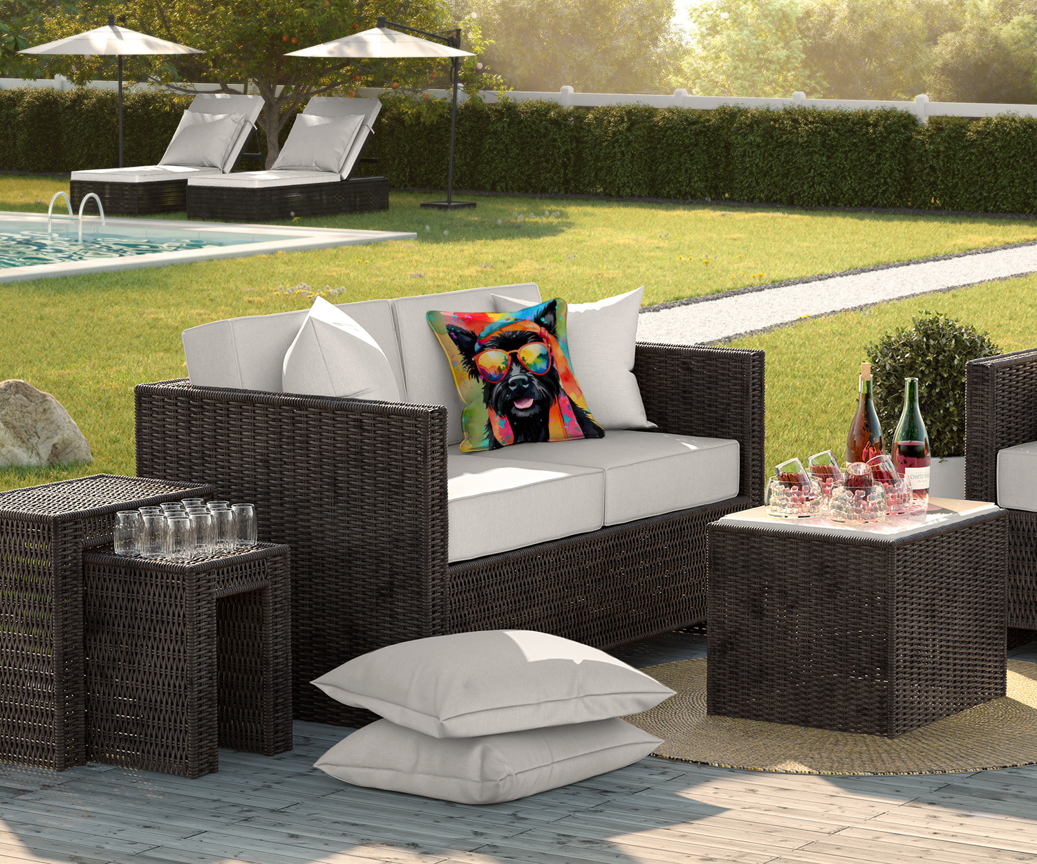 Transform your living area with the charming Groovy Scottie Vibes Pillow, showcasing stunning artwork that pays tribute to the adored Scottish Terrier breed. With dimensions of approximately 18 inches by 18 inches, this decorative pillow is the perfect accessory to infuse comfort and style into any space, whether it's indoors or out.