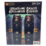 These Gruesome Skulls Stack Print Slip-On Halloween Tattoo Sleeves showcase a chilling stack of skulls design, perfect for adding a terrifying edge to any Halloween costume. The intricate print delivers a bold and spooky visual effect, making them ideal for gothic, skeleton, or horror-themed outfits. The slip-on design ensures a comfortable and secure fit for most arm sizes, providing an easy and effective way to enhance your look. These sleeves are perfect for Halloween parties, cosplay, or haunted house events. Packaged with a hanging card insert inside a polybag 5.75" x 9.75".,Gruesome Skulls Stack Print Slip-On Halloween Tattoo Sleeves,