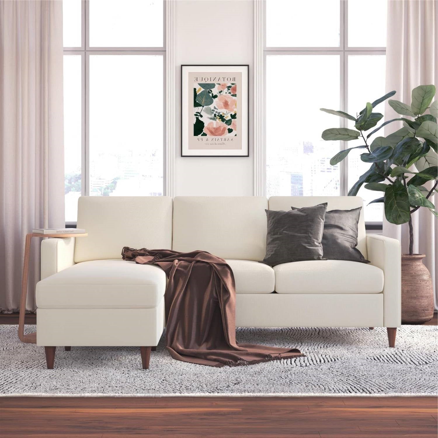 - Contemporary linen fabric upholstered sectional sofa adds character and comfort to your living room while adding depth to small spaces thanks to its lean profile. Its reversible chaise can be placed on either side to fit any room layout or converted into a standalone sofa and ottoman for added design choices