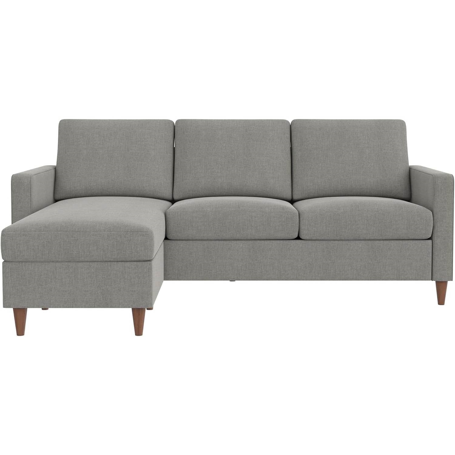 - Contemporary linen fabric upholstered sectional sofa adds character and comfort to your living room while adding depth to small spaces thanks to its lean profile. Its reversible chaise can be placed on either side to fit any room layout or converted into a standalone sofa and ottoman for added design choices
