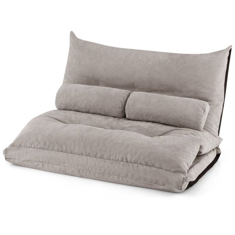 - Modern Adjustable Floor Lounger Chair Sofa Bed with 2 Pillows in Grey