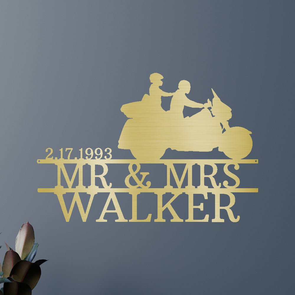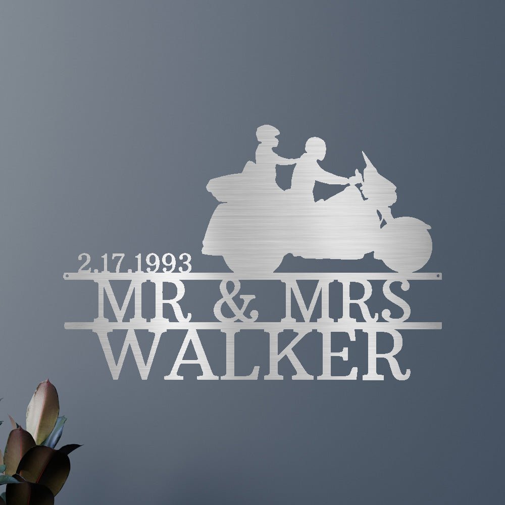 Custom Motorcycle Couple Metal Sign - Personalized Biker Love Wall Art