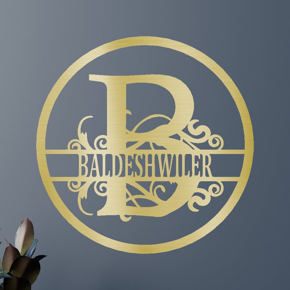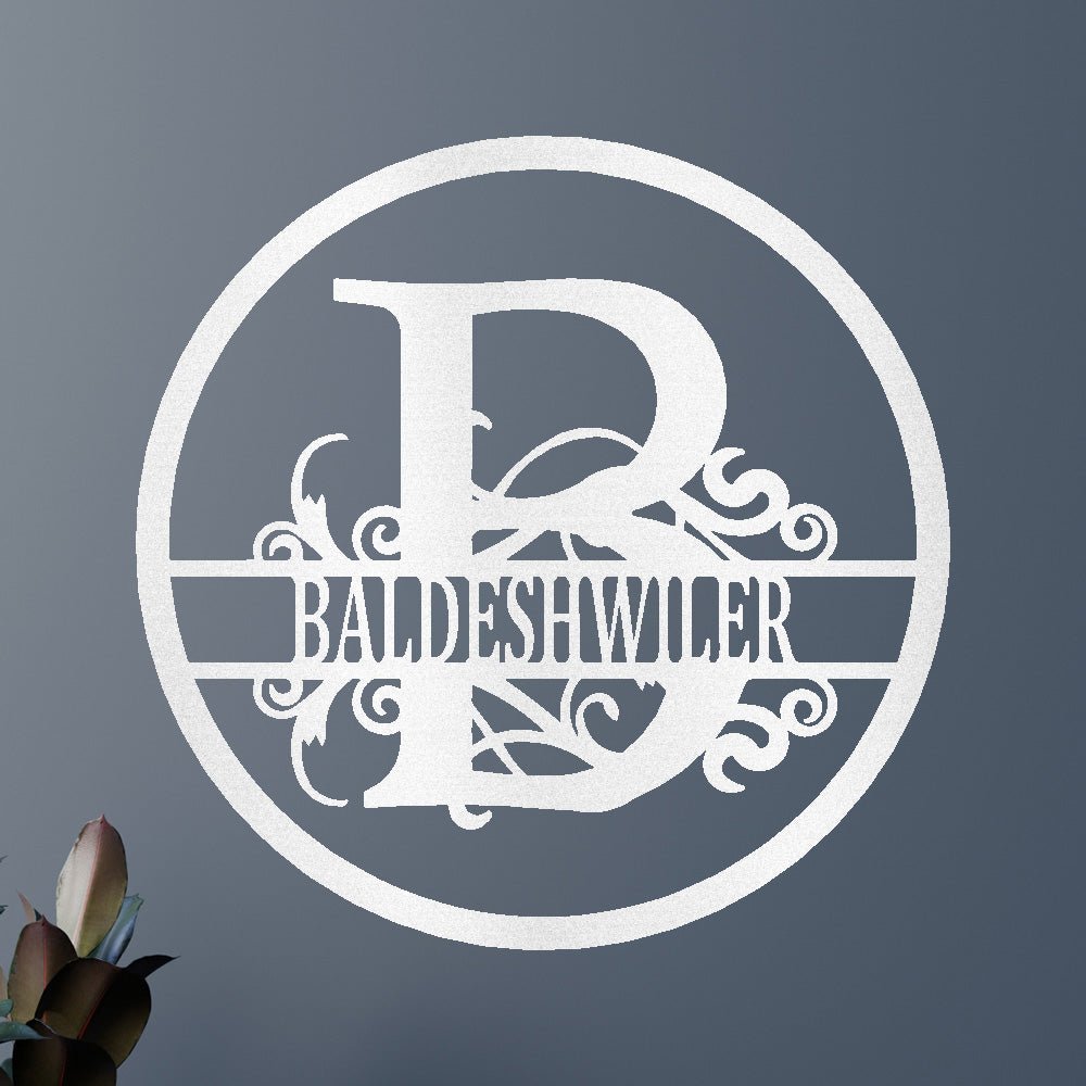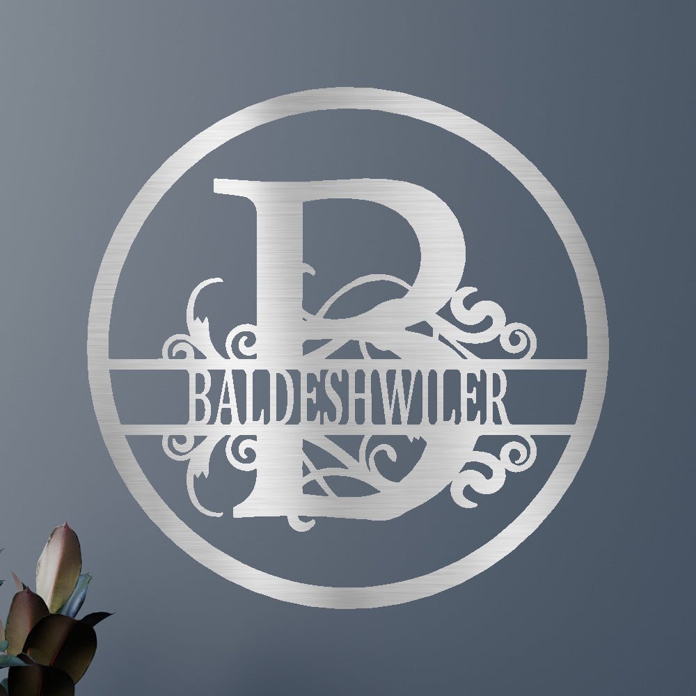 Custom Name Metal Wall Art Sign - Split Circle Monogram Family Decor