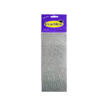 Use these charming Numeric Silver Foil Stickers to decorate scrapbooks, photo albums, gift wrap, stationary, frames and much more. Features two of each numeral and three zeros in a large elegant font. Set comes with one 4" x 9.5" sheet of stickers. Acid free. Comes packaged in a hanging poly bag.
