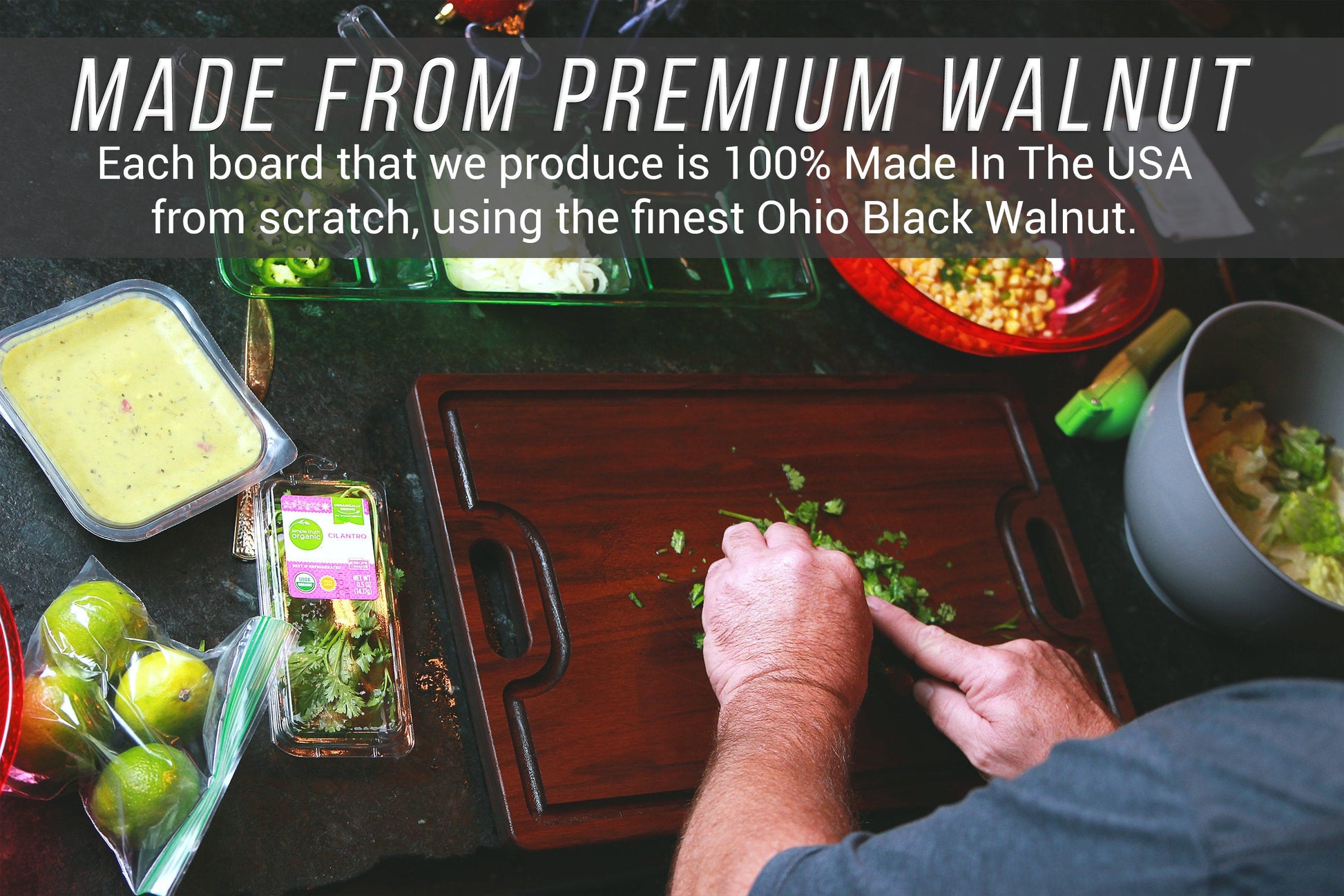 - 100% MADE IN THE USA: Each board that we produce is made right in Ohio, from scratch, and quality checked along the entire way. All wood is kiln dried and carefully crafted to meet the standards we expect in a quality cutting board. The result is a solid, sturdy and reversible board that will last you for year to come. It won't warp, crack, or splinter if properly maintained.
