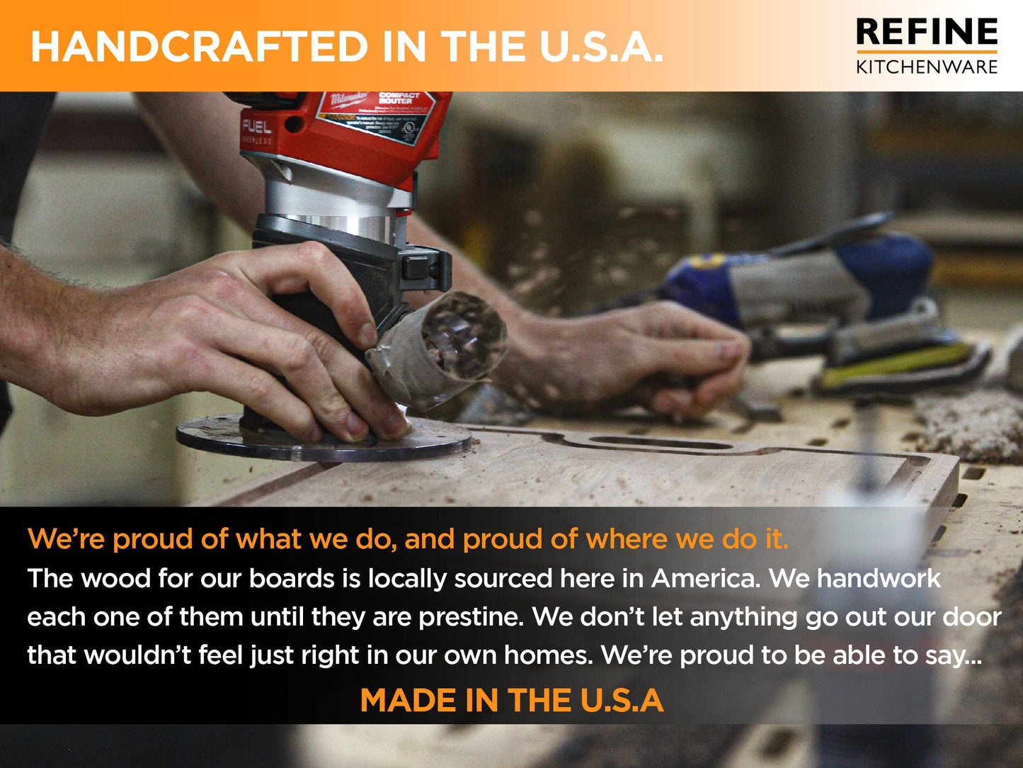 šš«šØš®šš„š² š¦ššš š¢š§ šš”š š.š.š. Each board that we produce is made right in Ohio, from scratch, and quality checked along the entire way. All wood is kiln dried and carefully crafted to meet the standards we expect in a quality cutting board. The result is a solid, sturdy and reversible board that will last you for year to come. It won't warp, crack, or splinter if properly maintained.