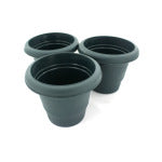 Each pack comes with 3 planter pots. Great for indoor and outdoor gardens. Comes in dark green and brown. Planters are packaged in shrink wrap. Measure almost 4" tall.